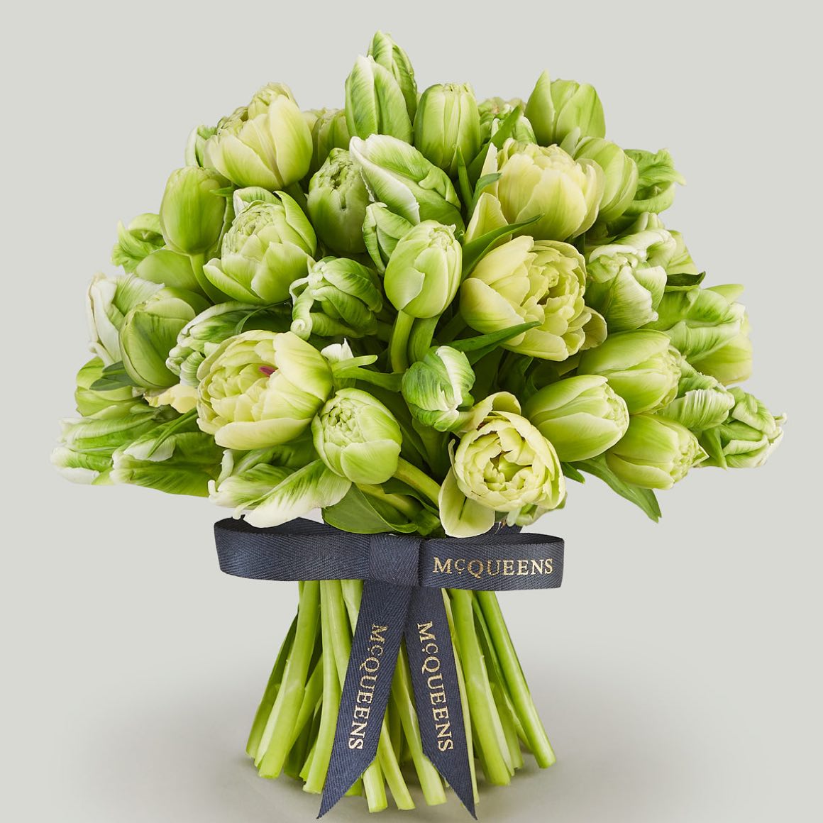 McQueens Flowers is renowned for its mono-floral displays (the use of all one flower variety). We can’t think of a stem more suited to this design than the beguiling white parrot tulip. For impact, house these charming blooms in one vessel and observe as their stems twist and turn to form captivating silhouettes.